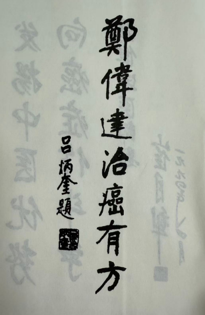 全国著名老中医专家、原卫生部中医管理局局长吕炳奎为郑伟达教授题词