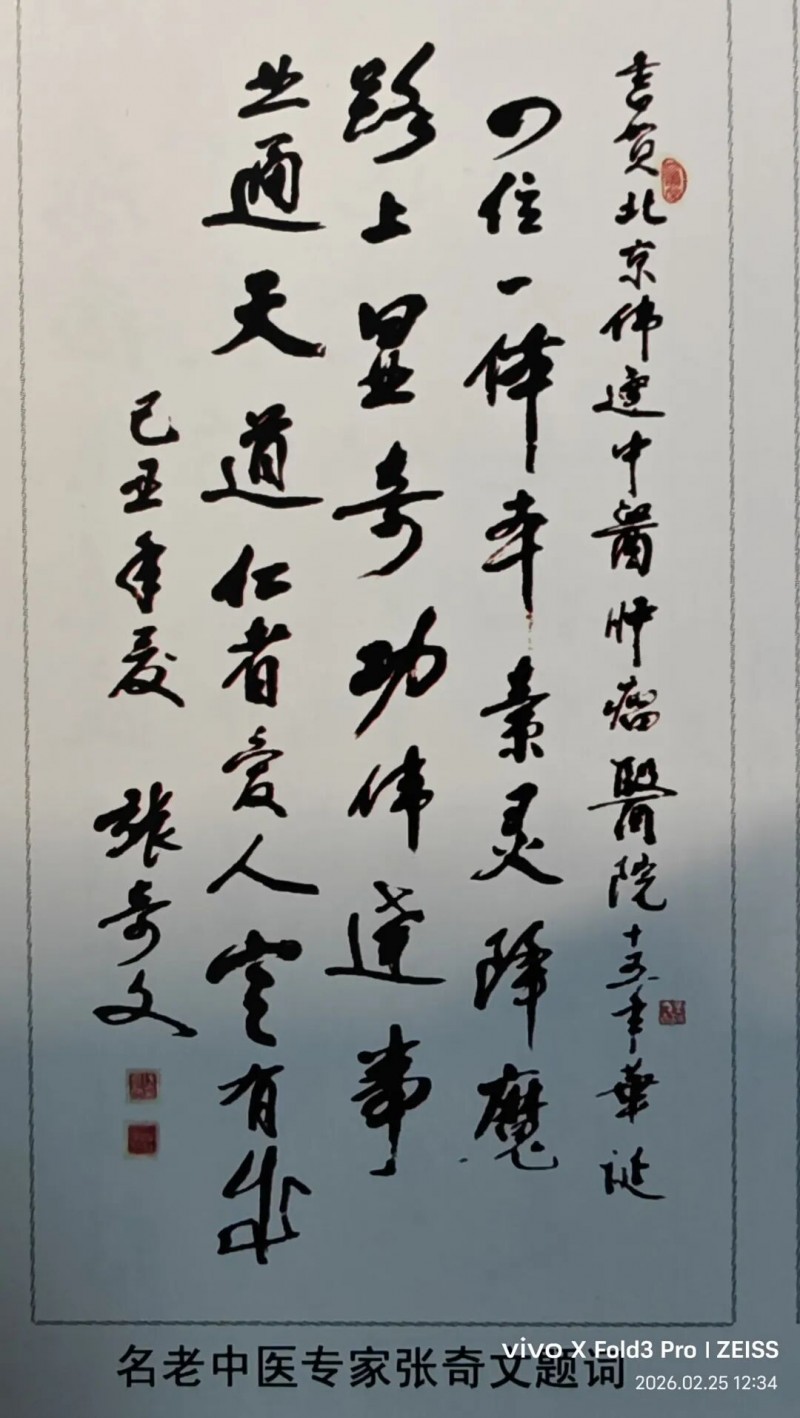 二人因中医药传承的共同使命结缘,在全国中医药学术年会、中医药高质量发展论坛等重要场合多次并肩同行,携手为中医药事业发展建言献策。在张奇文教授主编的《名老中医之路》续编第三辑中,专门收录了郑伟达教授署名文章《俱进与时求发展,慈丹伟达绘宏图——记我的习医从医路》,书中系统记述其六代中医家学传承、师从吕炳奎先生的治学历程、深耕中医肿瘤防治的创新实践,以及研发慈丹胶囊、创立“四位一体抗癌康复疗法”的学术成就。更具分量的是,该辑同期收录颜德馨、颜正华、程莘农、周仲瑛、郭子光等国医大师的从医之路,将郑伟达教授与中医界泰斗并列记载,既是张奇文教授对其学术造诣的高度认可,也是对中医肿瘤领域传承创新的充分肯定。书中以从医之路为缩影,清晰展现了老一辈中医人深耕不辍、中青年中医人接力奋进的传承脉络,彰显了中医药事业生生不息的蓬勃生命力。