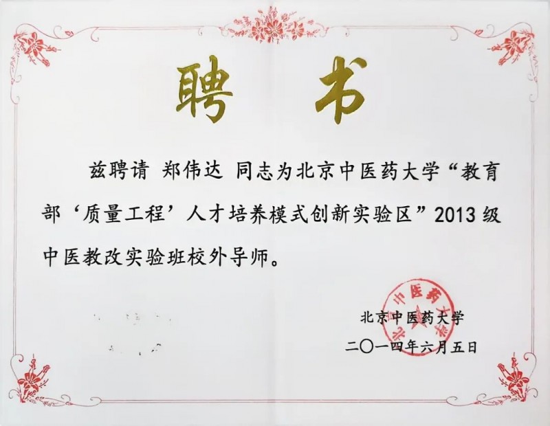 郑伟达君出生于闽域福州中医世家,先后拜师于名医汪其浩主任和郑孙谋教授门下学习深造,得其真传。学成后,在故里创办福州伟达肿瘤医院,积极开展中医临床工作,刻苦钻研中医药防治肿瘤的理论,研制出慈丹系列抗癌中成药,为很多肿瘤患者解除疾苦,活人无数。郑伟达君在学有所成的时候,执意拜我为师。我感其诚,且为奖掖后学,于辛已年桃月收其为徒。
