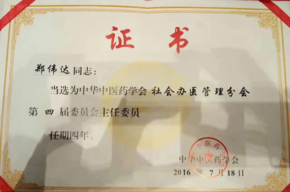 郑伟达教授自2012年首次当选、2016年连任中华中医药学会社会办医管理分会主任委员以来,深感社会办医任重而道远,务必团结全体委员努力工作,务必以殚精竭虑之精神把社会办医管理分会工作做好、做扎实;让领导放心,让人民满意。特此赋诗一首《荣任社会办医管理分会主任委员感悟》: